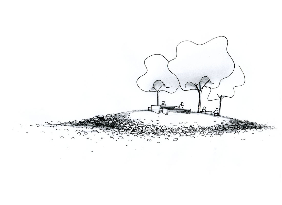 The main design element is the creation of a stairway to heaven, a terraced connection between the low and highlands of the park. Each step of this stairway will be planted with different species, different steps glowing with the different seasons. Natural process is brought to the foreground. A small percentage of the total area is remade into carefully edited forms and events, while the rest of the space is left to continue its life of wet and dry cycles, erosion, and natural revegetation