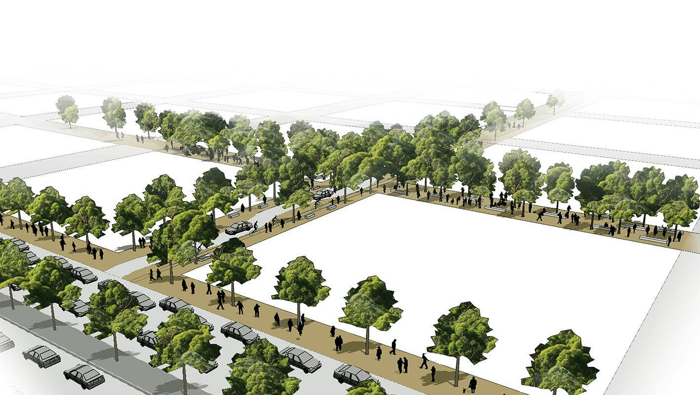 The solution proposed is based on the above characteristics: the opportunity to turn part of the ample road network into public space; and the need to use the same network to provide for very good everyday-life connectivity. Based on Living Streets and Shared Space, a system of three overlapping networks is proposed, controlling use through speed: the 5km/h life-scapes, prioritizing public life. The 15km/h coexistence-scapes, allowing simultaneous public life and neighborhood-scale movement. And the 50km/h speed-scapes, serving metropolitan-scale transportation. The post-asphalt landscapes are at once movement corridors and public spaces, creating a network to seed life back into the city.